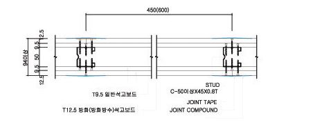 두께 및 간격: 구조 계산에 따라 결정되며 일반 벽체는 50mm 스터드를 450mm 간격으로 설치합니다.