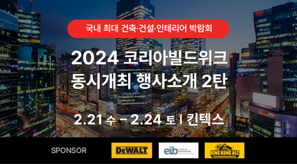 2024년 2월 22일(목)부터 26일(월)까지 킨텍스에서는 국내 최대 초대형 건축 박람회 **'코리아빌드'**가 개최됩니다. 건축, 건설 분야 유관 산업의 최신 트렌드와 기술을 한자리에서 경험할 수 있는 최고의 기회입니다!